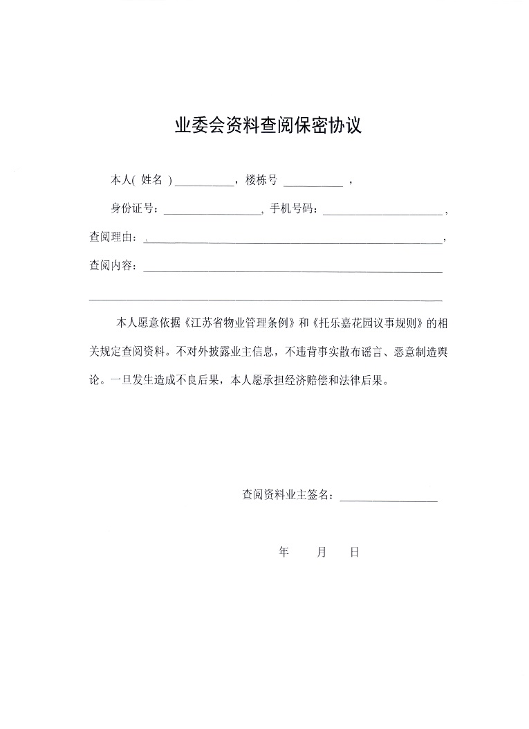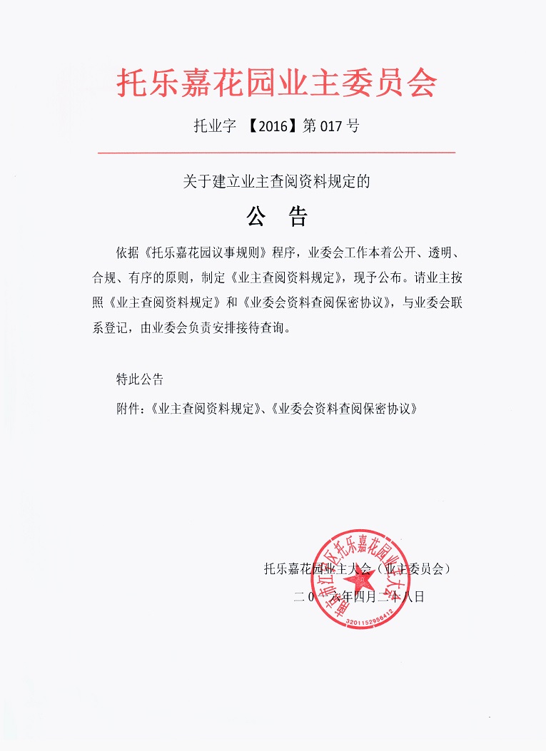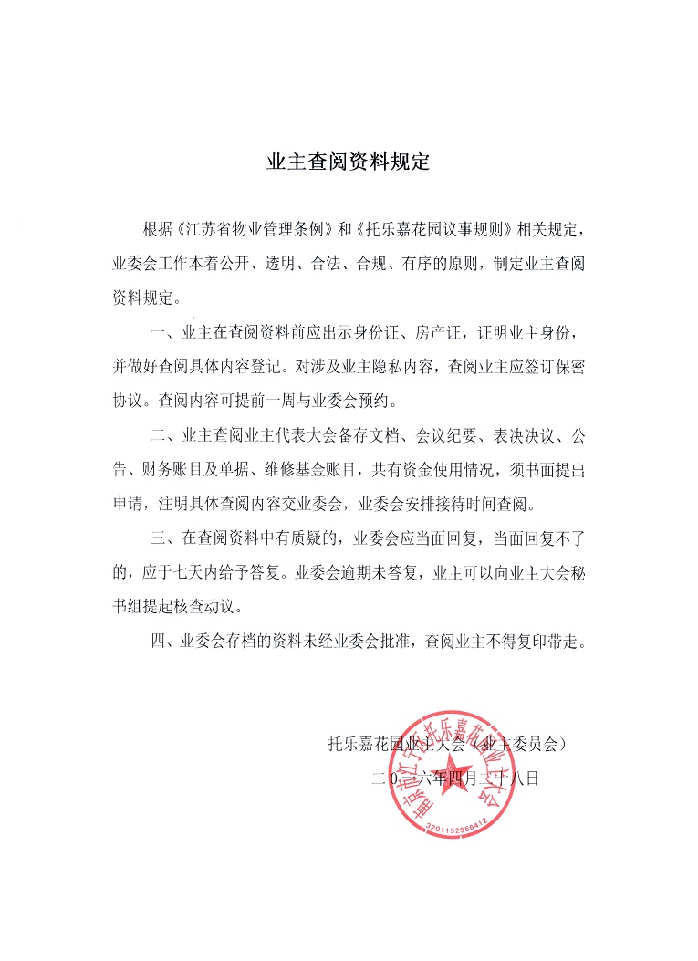 关于建立业主查阅资料规定的 公 告