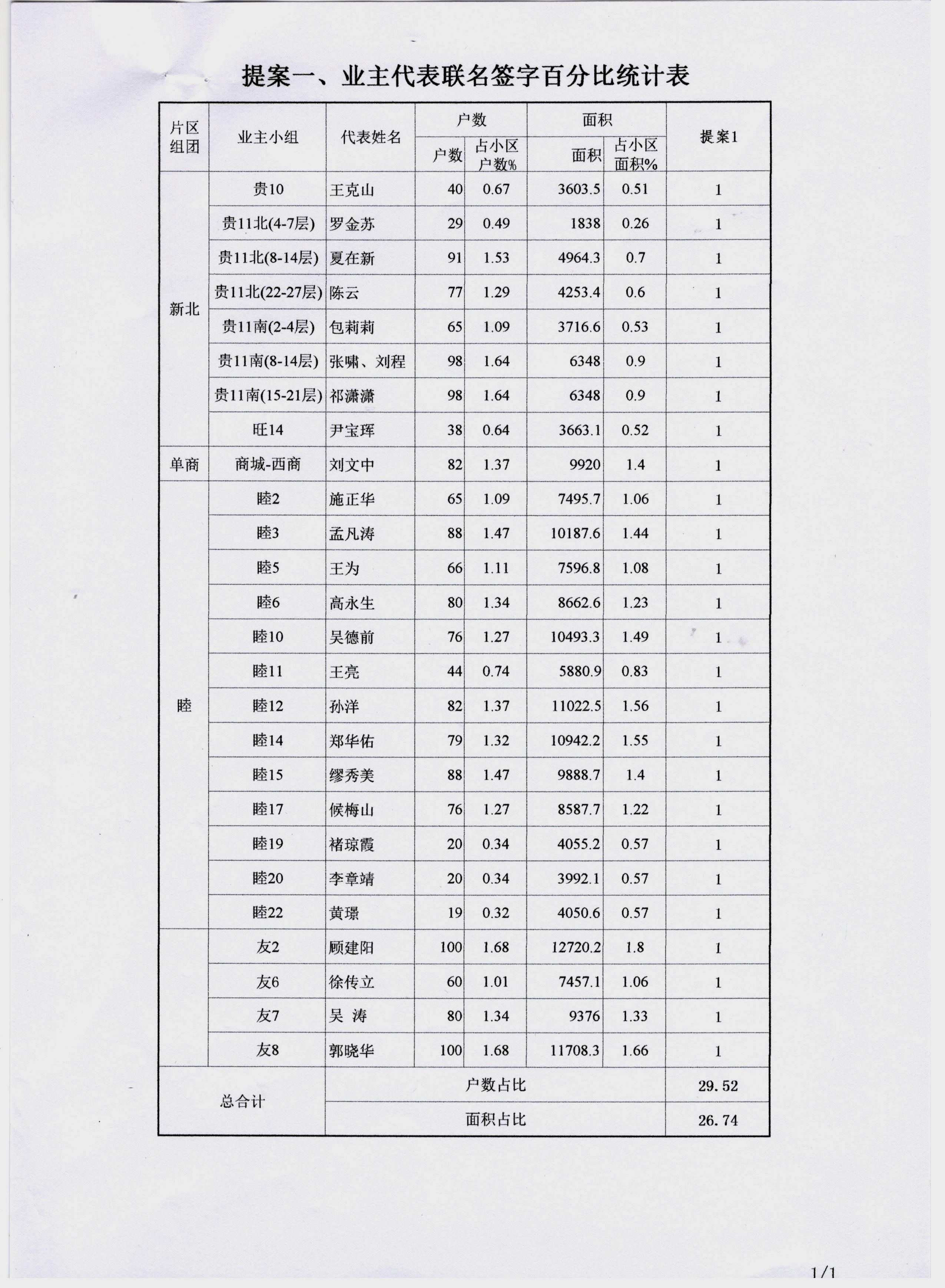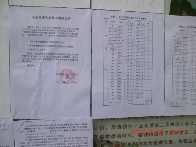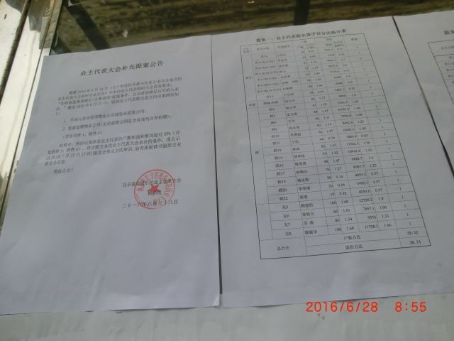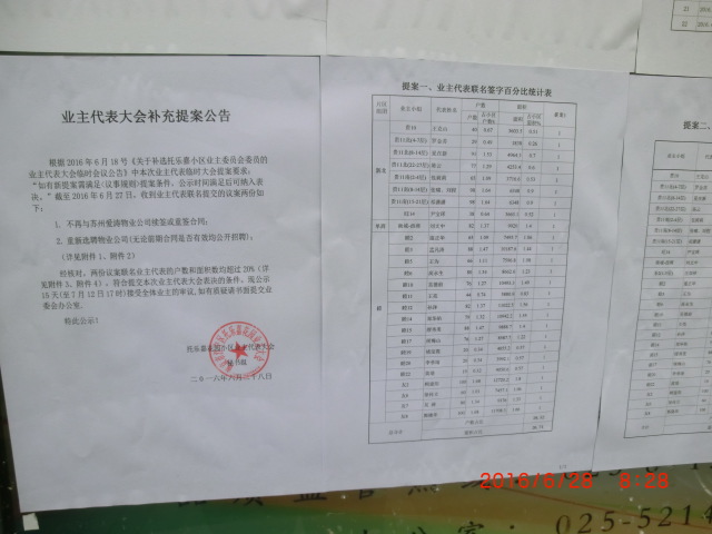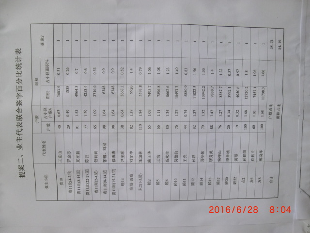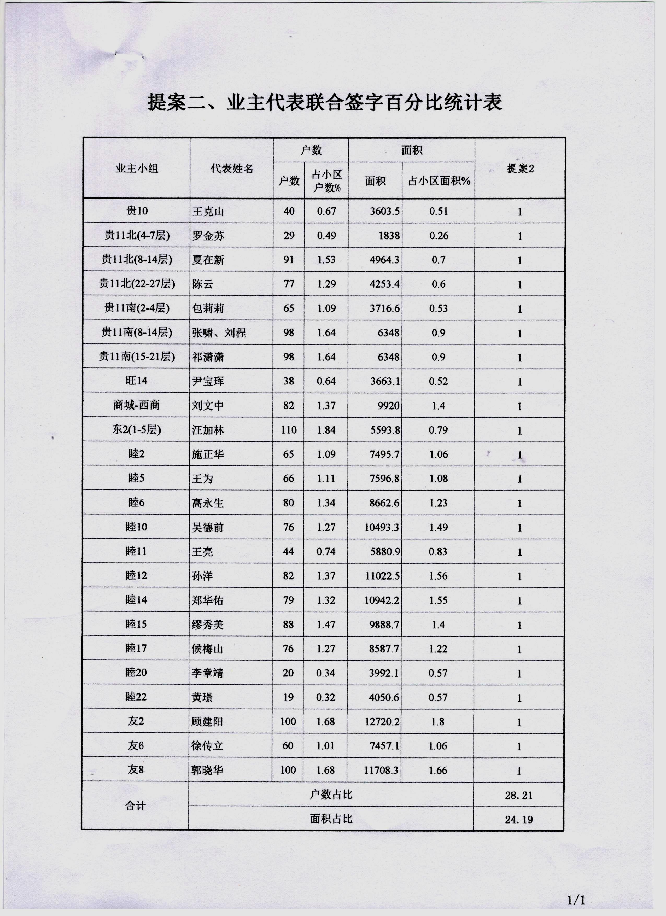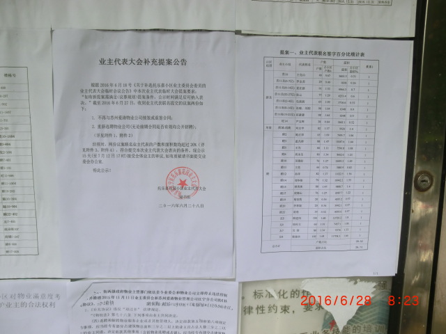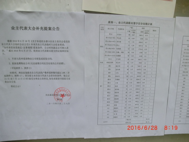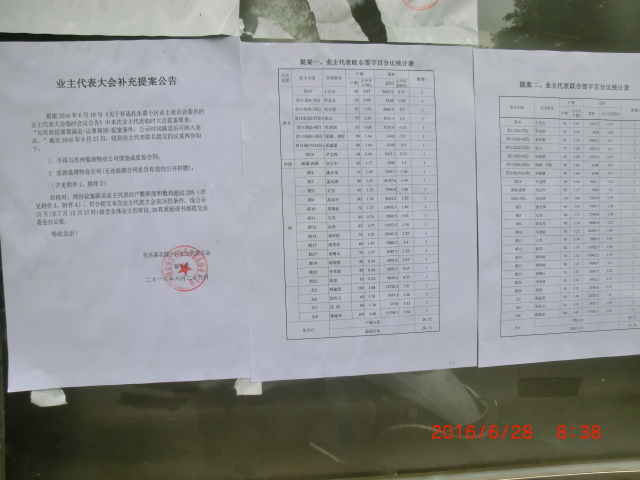经核对,两份议案联名业主代表的户数和面积数均超过20%(详见附件3、附件4),符合提交本次业主代表大会表决的条件。现公示15天(至7月12日17时)接受全体业主的审议,如有质疑请书面提交业委会办公室.
