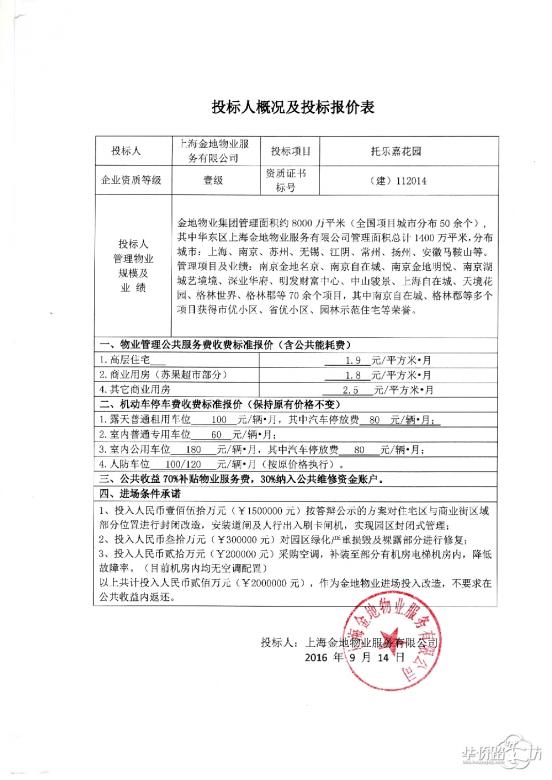 现将两家物业公司提交的方案及合同要点公示(见附件),并征集业主意见。请业主将针对方案和合同要点的修改意见以书面形式提交至招聘工作组(业委会办公室,电话025-52075406),意见征集截止日期为9月24日下午17点。