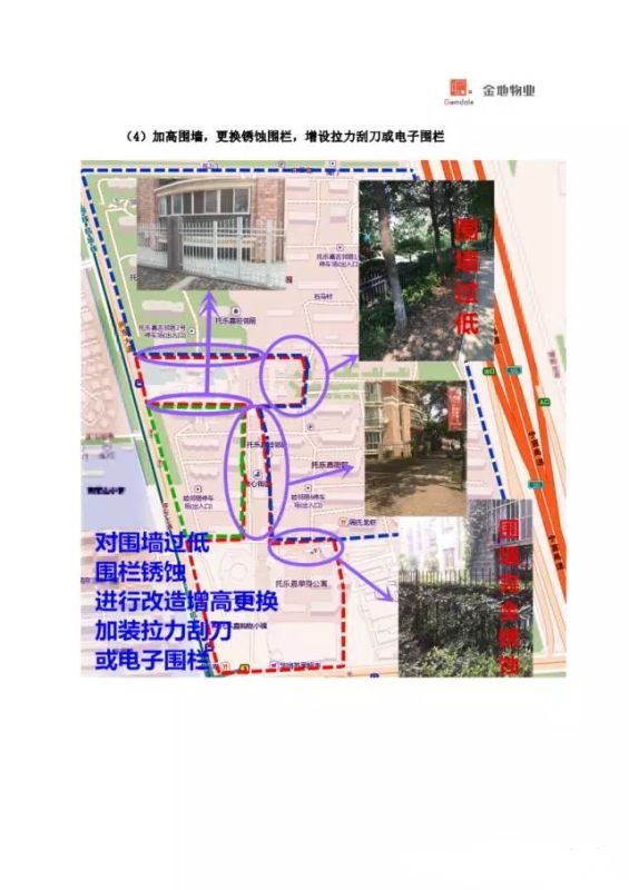 3、小区外围墙高度超过2米、无破损;园区大门、单元门至少一种门禁功能正常(缺失且已确定需要完善的除外)